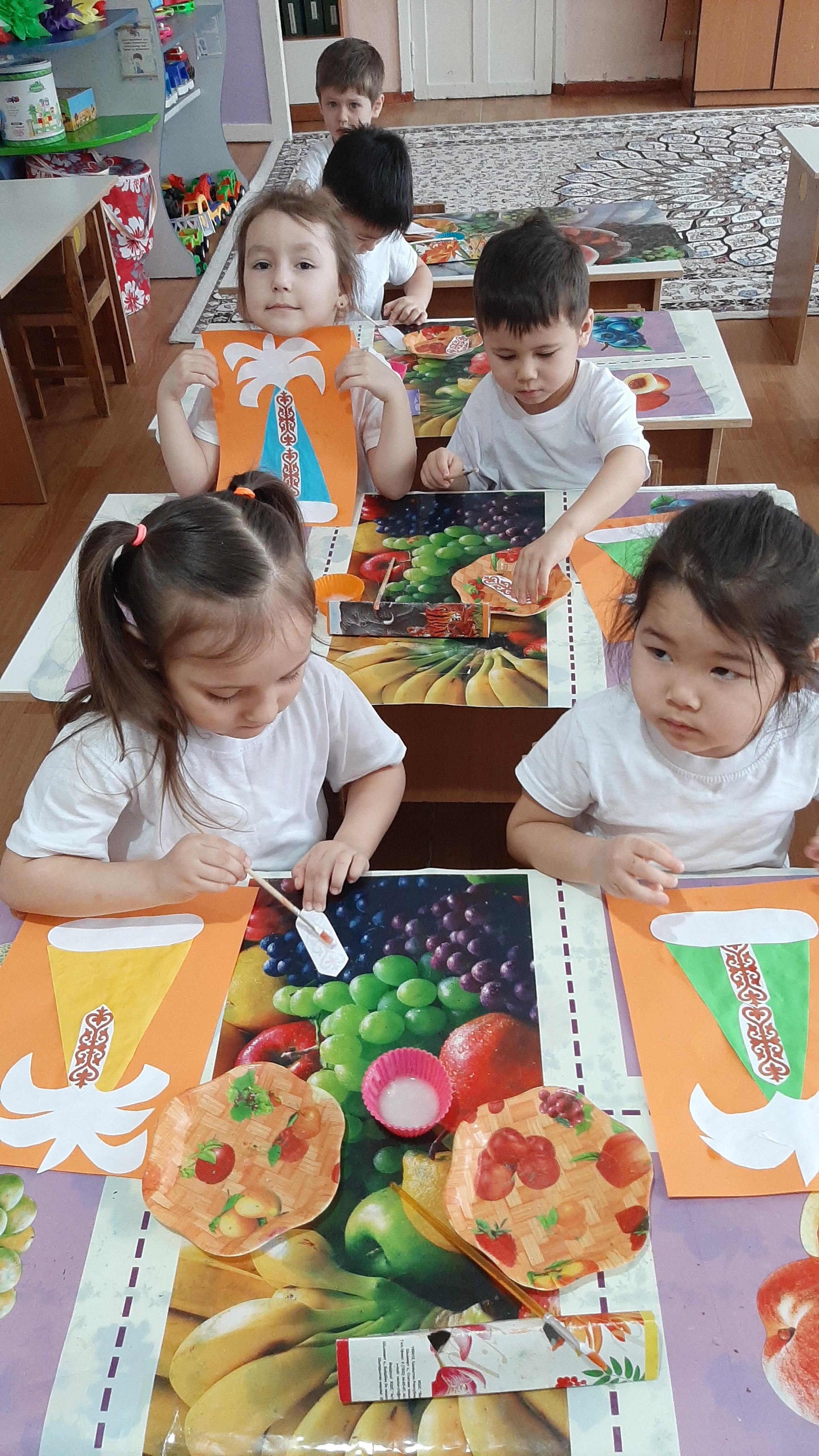 Программное содержание Дать первичные представления об украшении орнаментом головного убора саукеле. Развивать сюжетно – игровой замысел, способствовать развитию воображения. Воспитывать эстетический вкус, чувство взаимопомощи.
