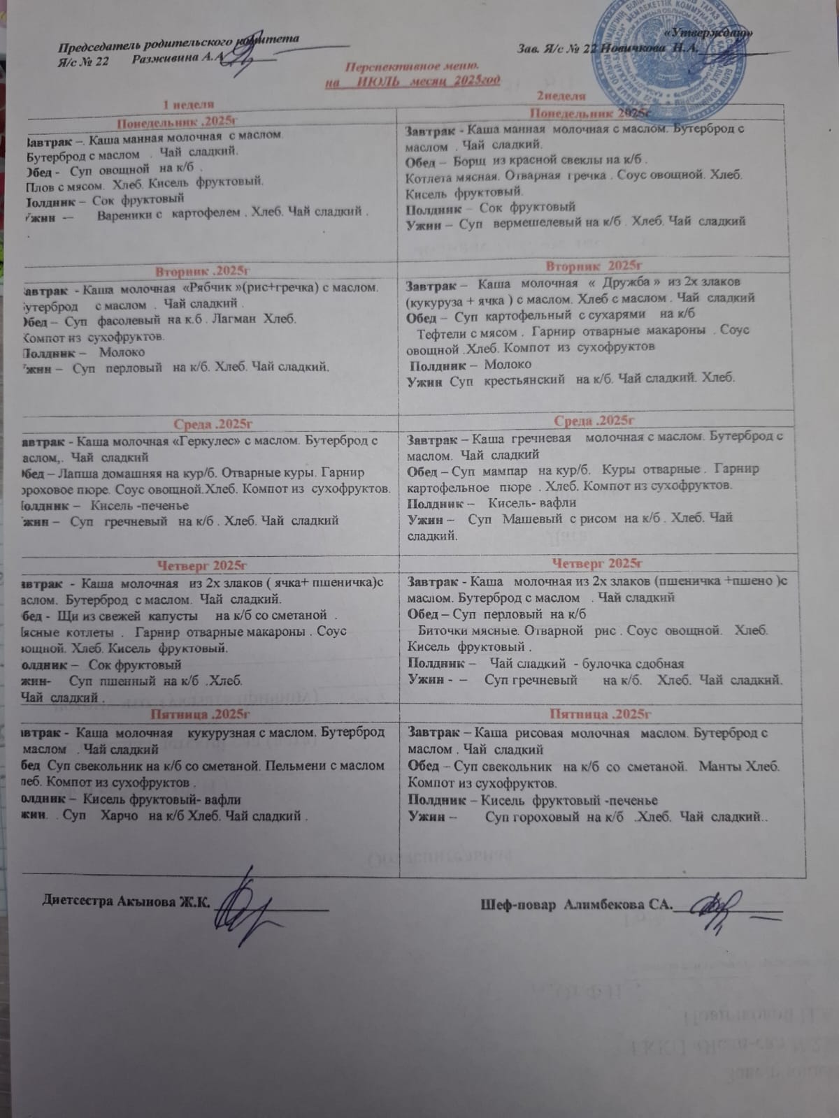 Десятидневное меню Июль 2025год » №22 бөбекжай-бақшасы