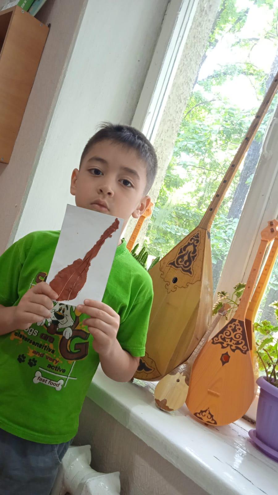 Цель: Познакомить с народным инструментом,дать понятие о значении,внешнем виде,применении. Привить эстетическое восприятие. Вызвать интерес к инструменту.Формировать познавательный интерес дошкольников к национальным музыкальным инструментам, интерес к казахскому народному творчеству и обычаям. Развитие способности любви к окружающим, доброжелательности, любознательности, находчивости. Воспитывать любовь и уважение к традициям. Закрепить навыки пластилинографии.