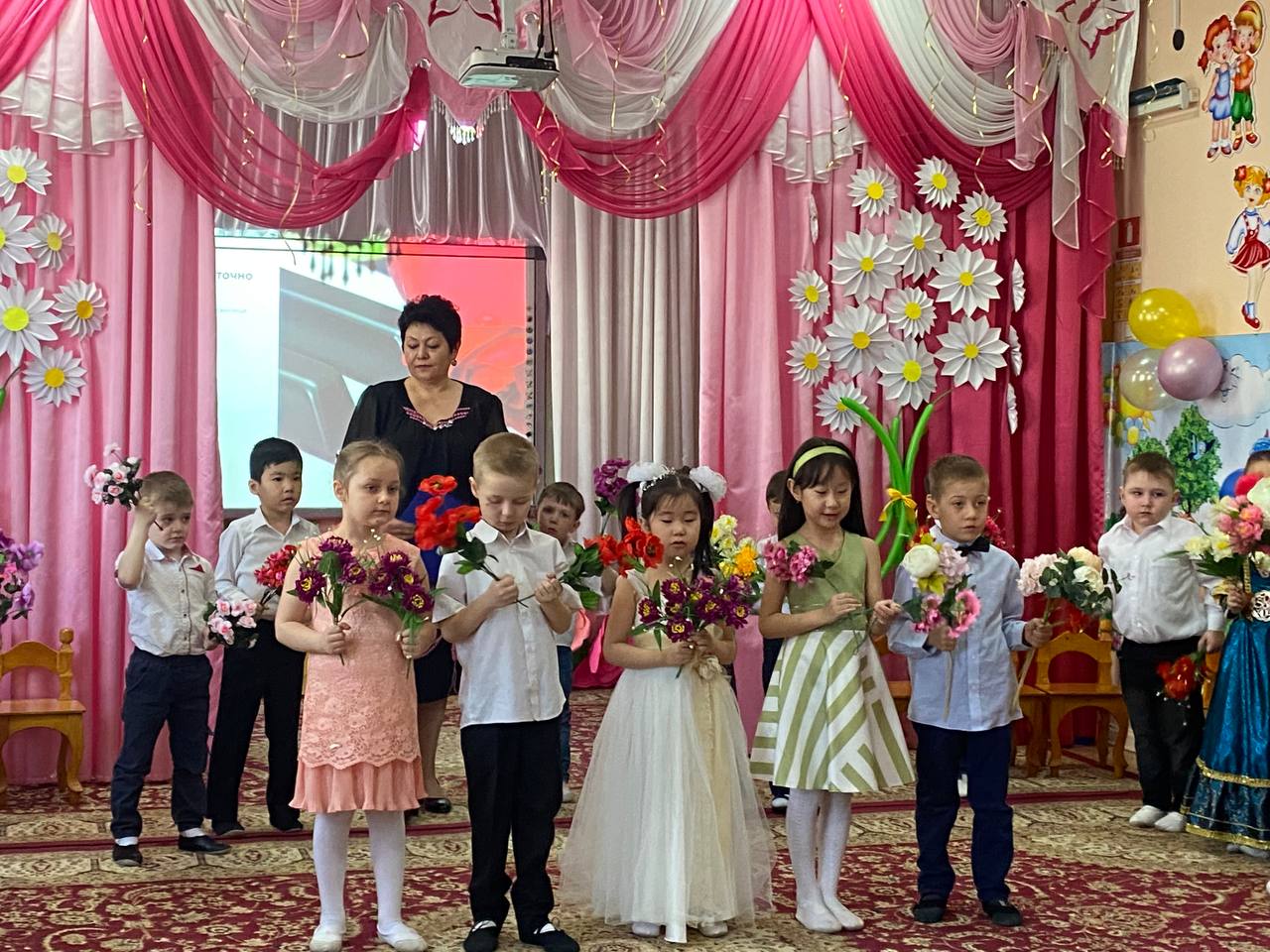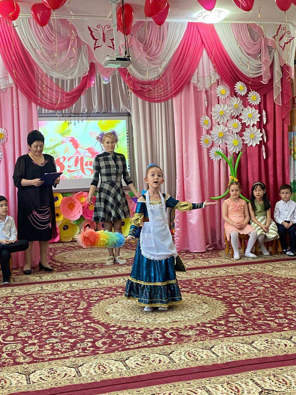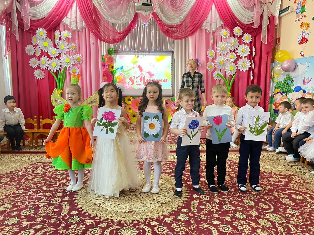 ВЕСЕННИЙ УТРЕННИК К 8 МАРТА В ПРЕДШКОЛЬНОЙ ГРУППЕ № 8 » №22 бөбекжай-бақшасы