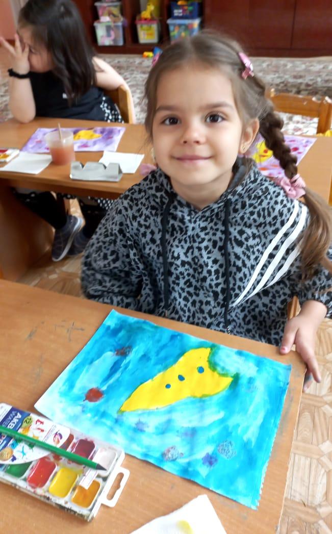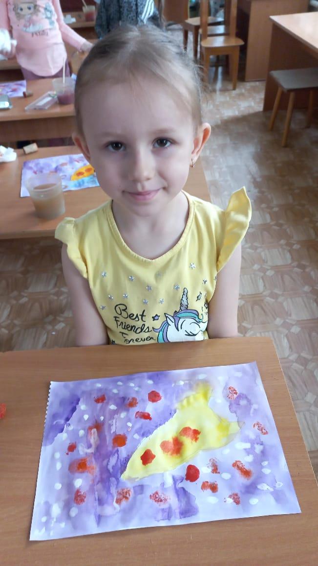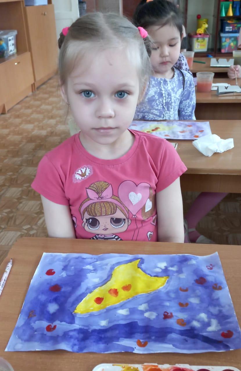 Задачи: закрепить знания о космосе; умение рисовать красками- тонировать лист; учить рисовать ракету, используя геометрические фигуры; продолжать создавать композицию в рисовании, желание отразить свои впечатления в рисунке; воспитать чуткость к восприятию красоты окружающего мира.