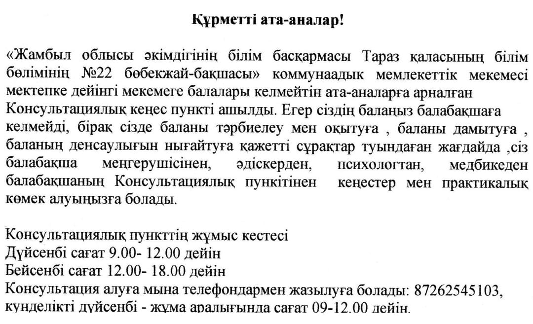 Ата - аналарға » №22 бөбекжай-бақшасы