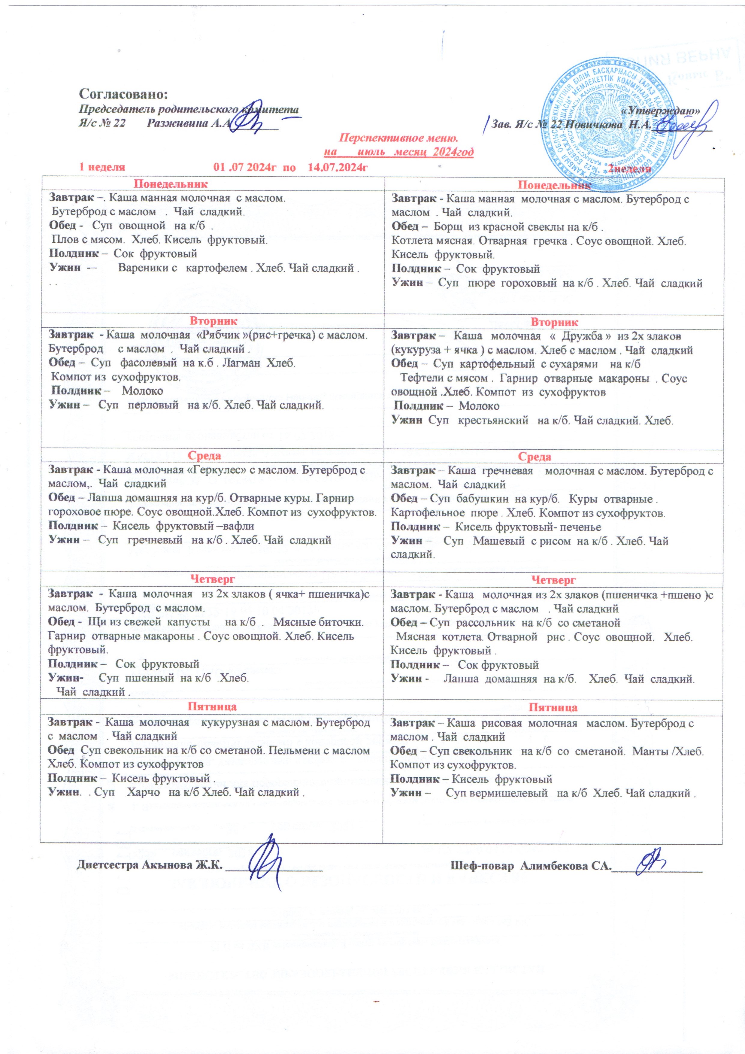 Меню на ИЮЛЬ 2024 » №22 бөбекжай-бақшасы