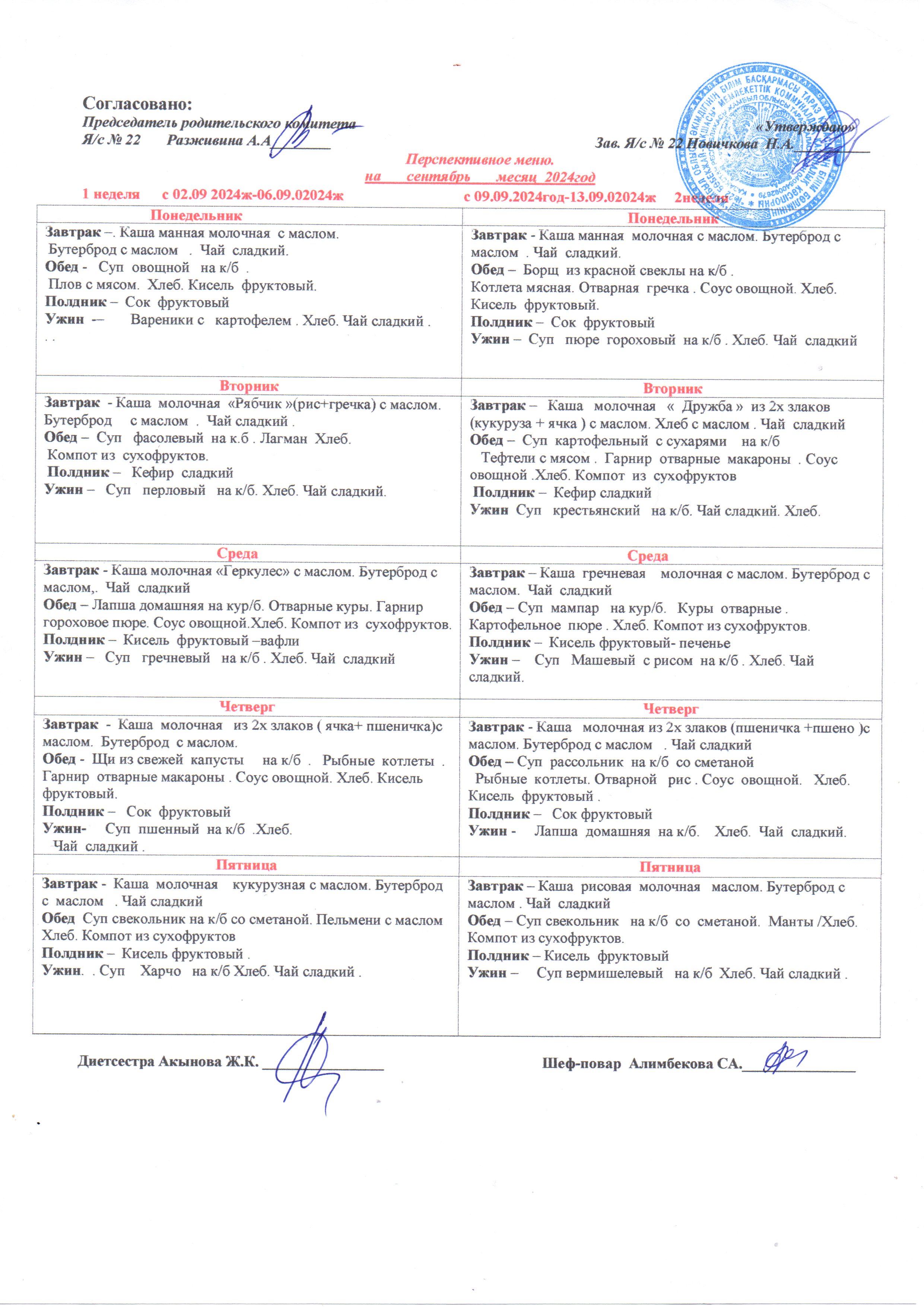 Перспективное меню на сентябрь 2024 » №22 бөбекжай-бақшасы