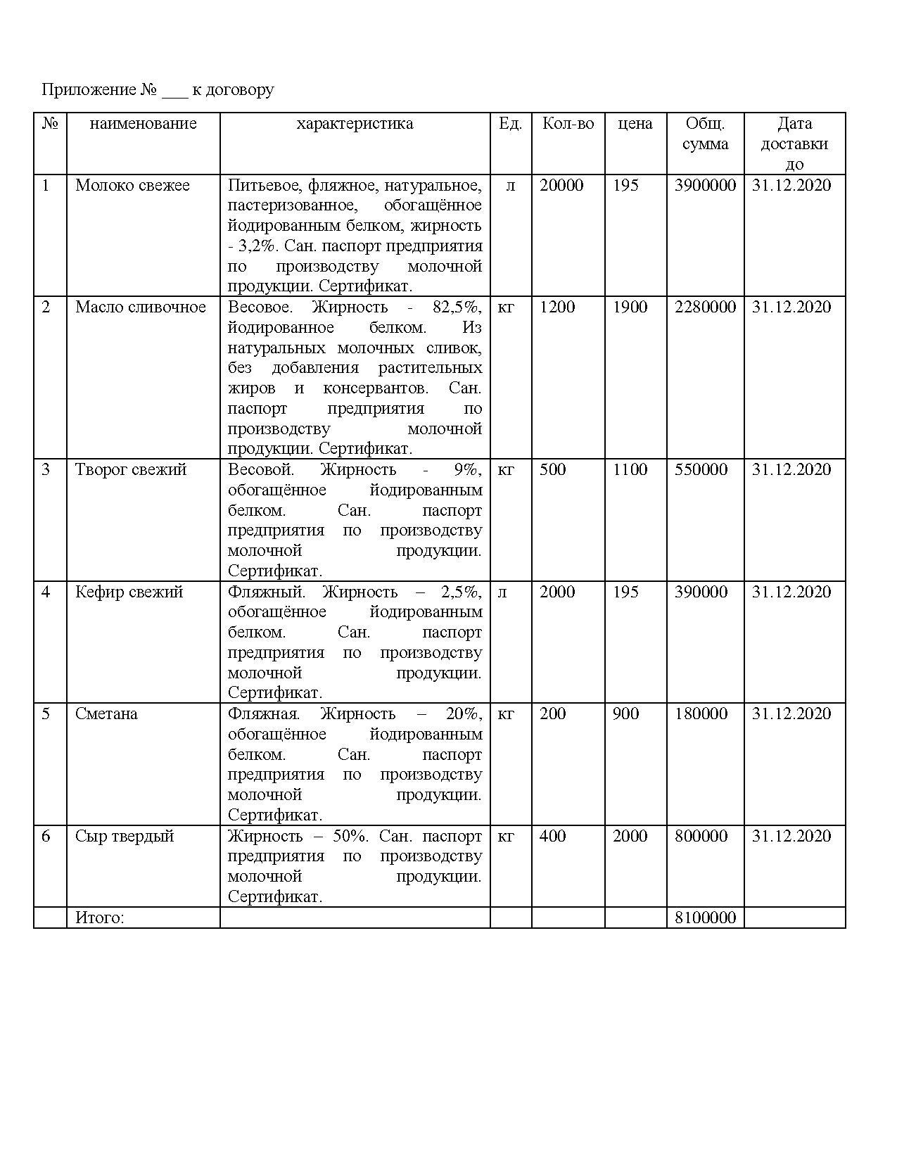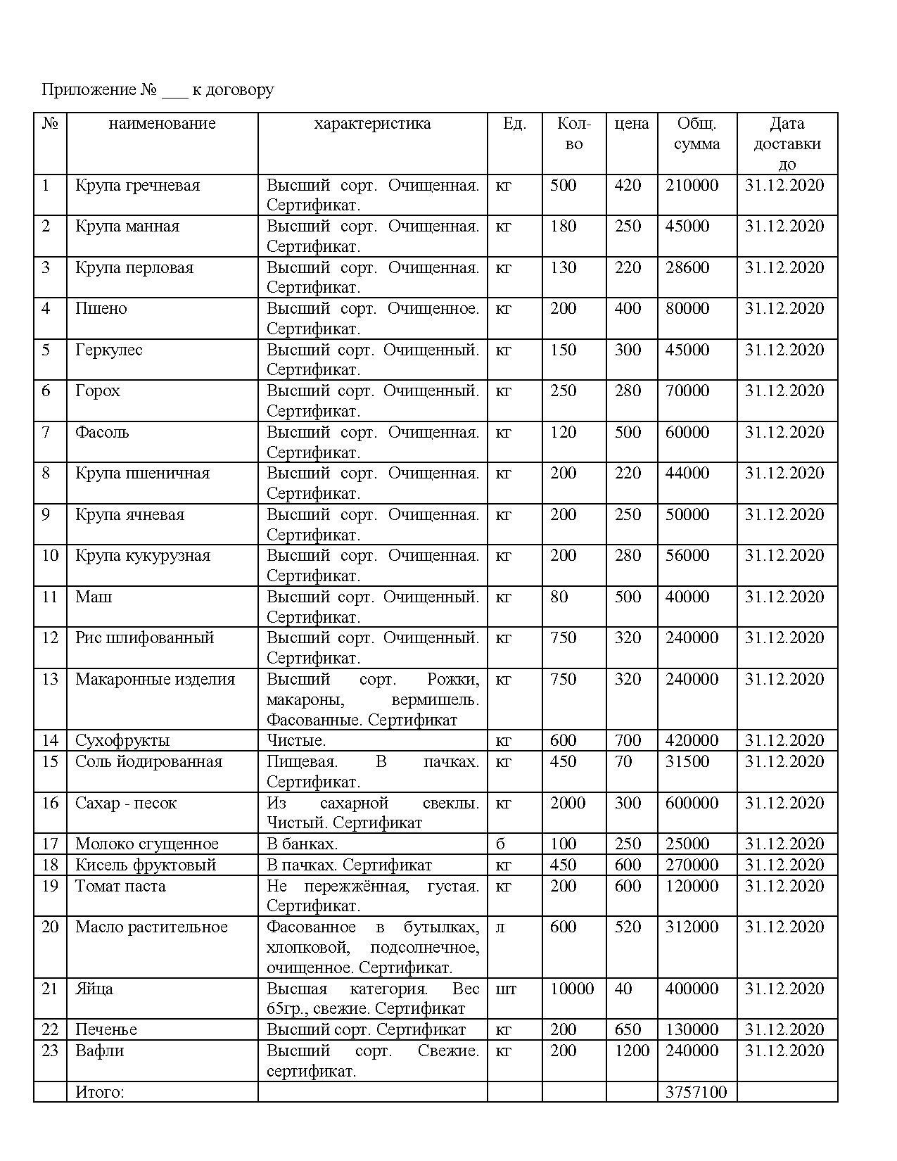 » » » План приобретения продуктов питания на 2020 год