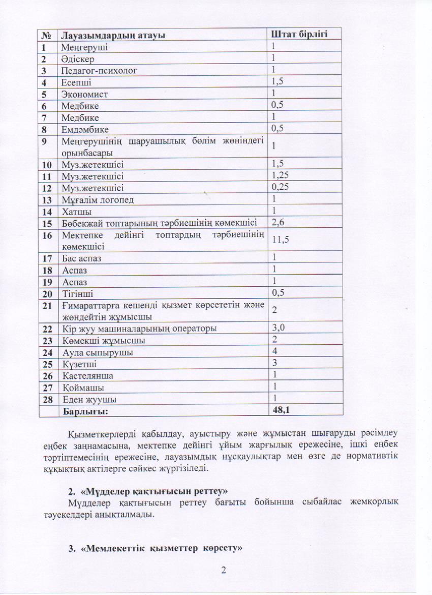 Сыбайлас жемқорлық тәуекелдеріне ішкі талдау нәтижелері туралы » №22 бөбекжай-бақшасы